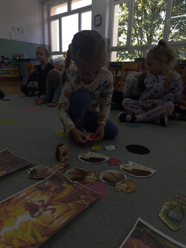 Dziś w naszej grupie rozmawialiśmy o tym, co zmienia się jesienią – liściach, pogodzie i jesiennych skarbach.