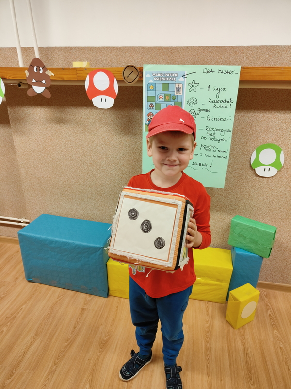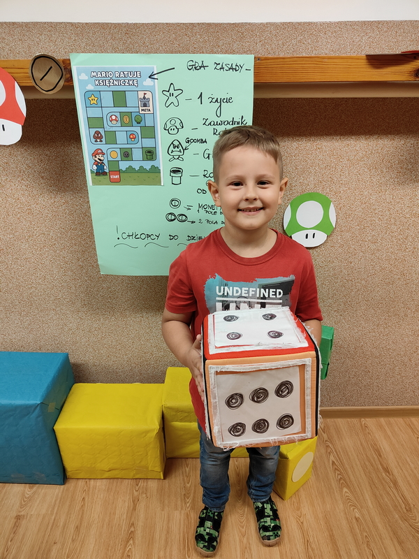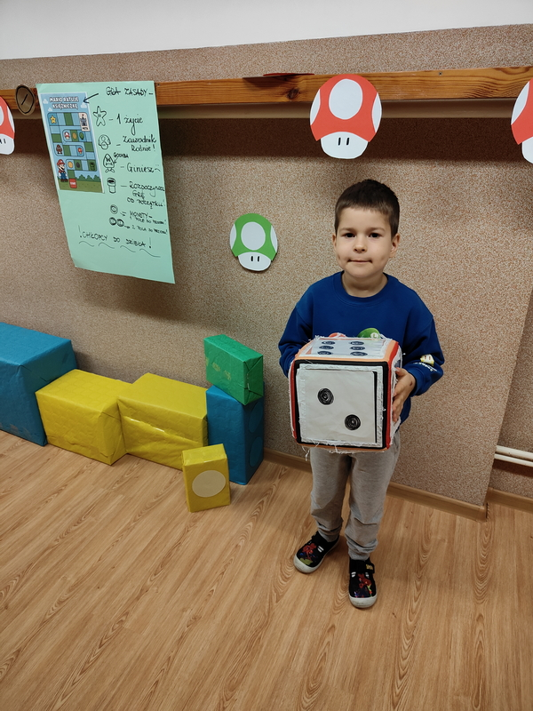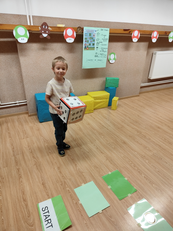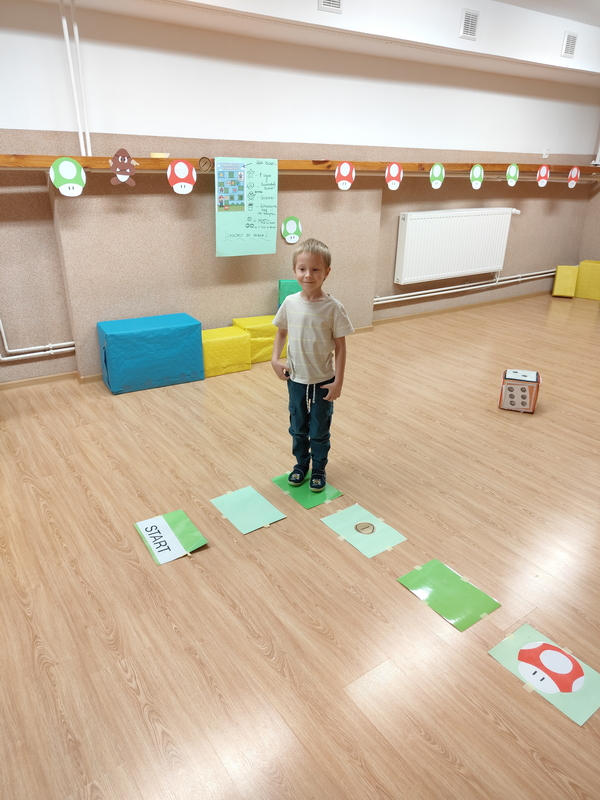 Chłopcy przenieśli się do świata gry i rywalizowali w planszowej wersji przygód Mario, gdzie liczyła się spryt, refleks i dobra zabawa .