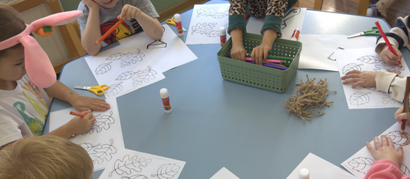 Dziś w naszej grupie rozmawialiśmy o tym, co zmienia się jesienią – liściach, pogodzie i jesiennych skarbach.